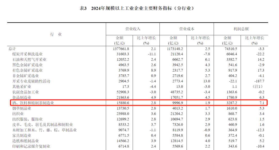 具體到食品工業(yè),各行業(yè)情況如下:農(nóng)副食品加工業(yè)完成營(yíng)業(yè)收入52908億元,同比下降3.0%,實(shí)現(xiàn)利潤(rùn)1364億元,同比下降0.2%;食品制造業(yè)完成營(yíng)業(yè)收入21864億元,同比增長(zhǎng)4.9%,實(shí)現(xiàn)利潤(rùn)1781億元,同比增長(zhǎng)6.3%;酒、飲料和精制茶制造業(yè)完成營(yíng)業(yè)收入15881億元,同比增長(zhǎng)2.8%,實(shí)現(xiàn)利潤(rùn)3287億元,同比增長(zhǎng)7.1%。(中國(guó)酒業(yè)協(xié)會(huì)CADA)