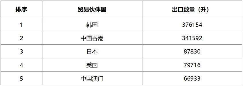 2024年6月白酒主要出口貿(mào)易國(guó)按數(shù)量排序