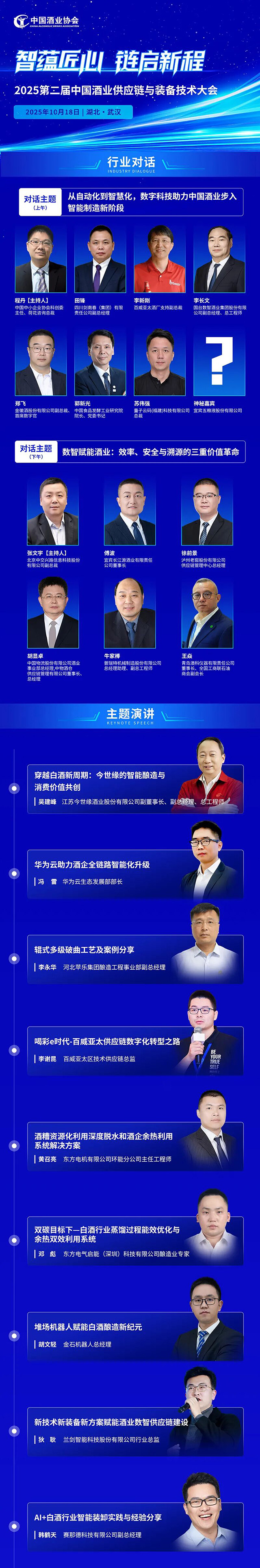 2025年10月18日,2025第二屆中國酒業(yè)供應(yīng)鏈與裝備技術(shù)大會即將于湖北省武漢市正式召開,屆時(shí)國內(nèi)近百家酒企總工、數(shù)字化負(fù)責(zé)人、裝備負(fù)責(zé)人、供應(yīng)鏈負(fù)責(zé)人以及國內(nèi)一 流裝備企業(yè)、供應(yīng)鏈企業(yè)將共聚一堂。大家將拋開空泛的理論,直擊痛點(diǎn),共同探討如何利用實(shí)實(shí)在在的數(shù)字化技術(shù)與智能化裝備:讓釀酒更高 效、讓品質(zhì)更穩(wěn)定、讓發(fā)展更環(huán)保、讓營銷更精準(zhǔn)、讓倉儲更智能、讓物流更敏捷;將數(shù)據(jù)真正轉(zhuǎn)化為生產(chǎn)力,讓傳統(tǒng)工藝與前沿科技真正實(shí)現(xiàn)融合。