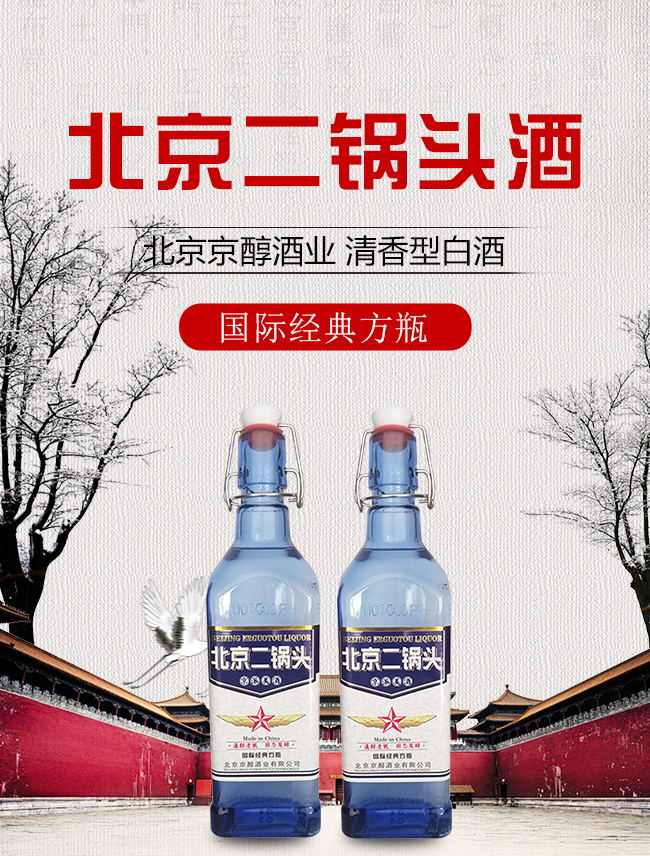 產品名:北京二鍋頭酒國際經(jīng)典方瓶清香型白酒【42°500ml】