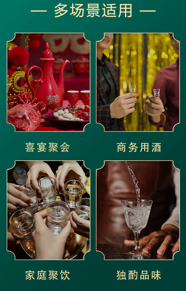 適飲場(chǎng)合:商務(wù)宴會(huì)、團(tuán)圓小酌、婚慶宴席、節(jié)日送禮、收藏