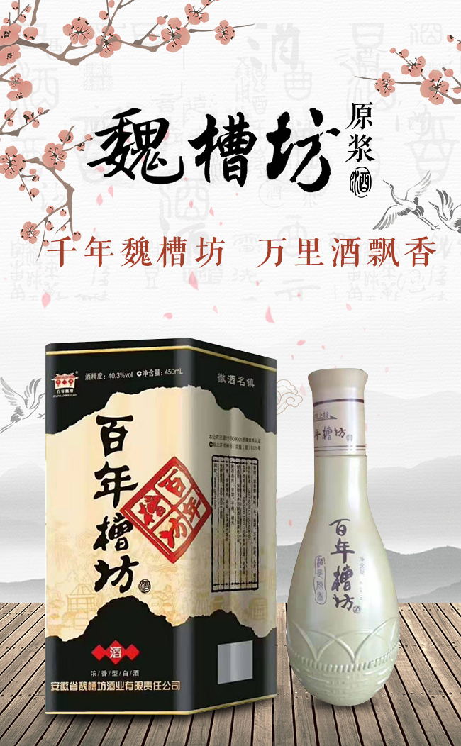 安徽魏槽坊酒業(yè)有限責(zé)任公司座落在華夏酒城安徽白酒之鄉(xiāng)——亳州市古井鎮(zhèn)。地處大京九鐵路沿線(xiàn),自古以來(lái),人杰地靈、物華天寶、資源豐富。公司釀造的白酒是通過(guò)“擇層取醅”、“擇時(shí)摘酒”等傳統(tǒng)技術(shù),得到精華的原漿美酒,再放入地下酒庫(kù)經(jīng)陶壇洞藏一定年限,使其自然老熟。