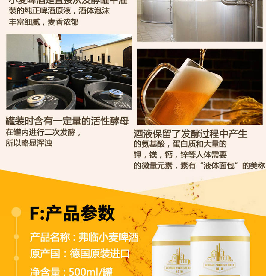 產(chǎn)品簡(jiǎn)介:弗臨小麥啤酒禮盒裝【500ml×10】