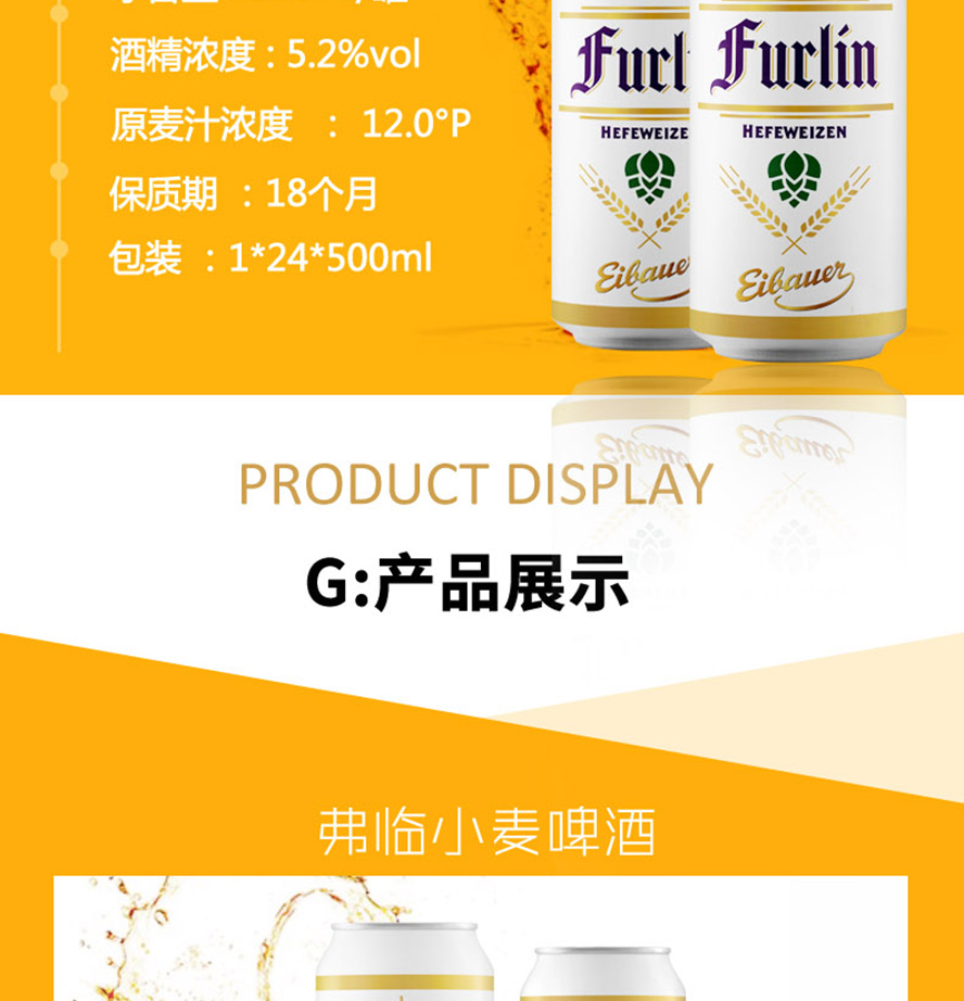 產(chǎn)品簡(jiǎn)介:弗臨歐得小麥精釀啤酒【12°500ml】