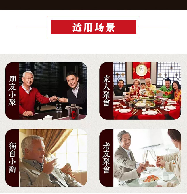 適飲場合:商務(wù)宴會、團圓小酌、婚慶宴席、節(jié)日送禮、收藏