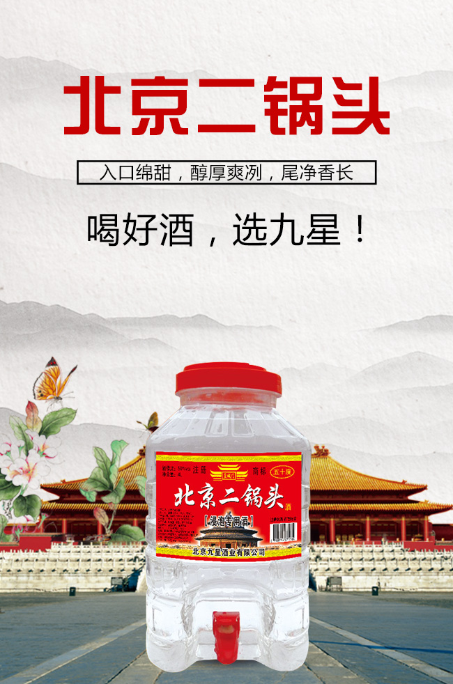 產品名:皇城門北京二鍋頭酒56°4L(浸泡用酒)