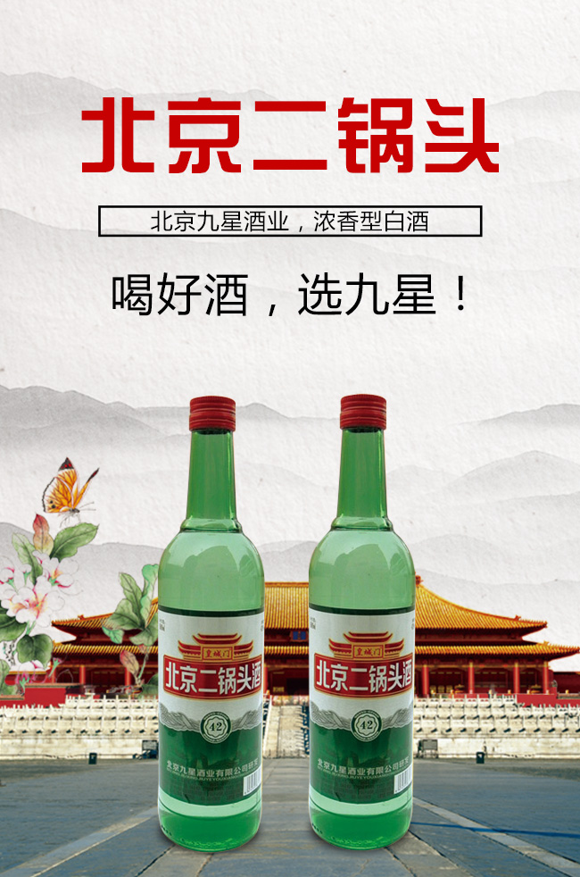 北京九星酒業(yè)有限公司是一家集產品研發(fā),生產銷售為一體的現(xiàn)代化白酒規(guī)模企業(yè)。目前開發(fā)的主要是皇城門系列白酒產品。是以優(yōu)質高粱為主要原料,用大麥、小麥、豌豆制成大曲,輔多種微生物為糖化酵劑,再經過長期發(fā)酵,緩慢蒸餾,取之精華,經多年陳貯后,精心勾兌而成。以“清香幽雅,醇厚綿甜,尾昧爽凈”的獨特風格,深受各界朋友的青睞。