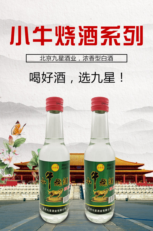 北京九星酒業(yè)有限公司是一家集產(chǎn)品研發(fā),生產(chǎn)銷售為一體的現(xiàn)代化白酒規(guī)模企業(yè)。目前開發(fā)的主要是皇城門系列白酒產(chǎn)品。是以優(yōu)質高粱為主要原料,用大麥、小麥、豌豆制成大曲,輔多種微生物為糖化酵劑,再經(jīng)過長期發(fā)酵,緩慢蒸餾,取之精華,經(jīng)多年陳貯后,精心勾兌而成。以“清香幽雅,醇厚綿甜,尾昧爽凈”的獨特風格,深受各界朋友的青睞。