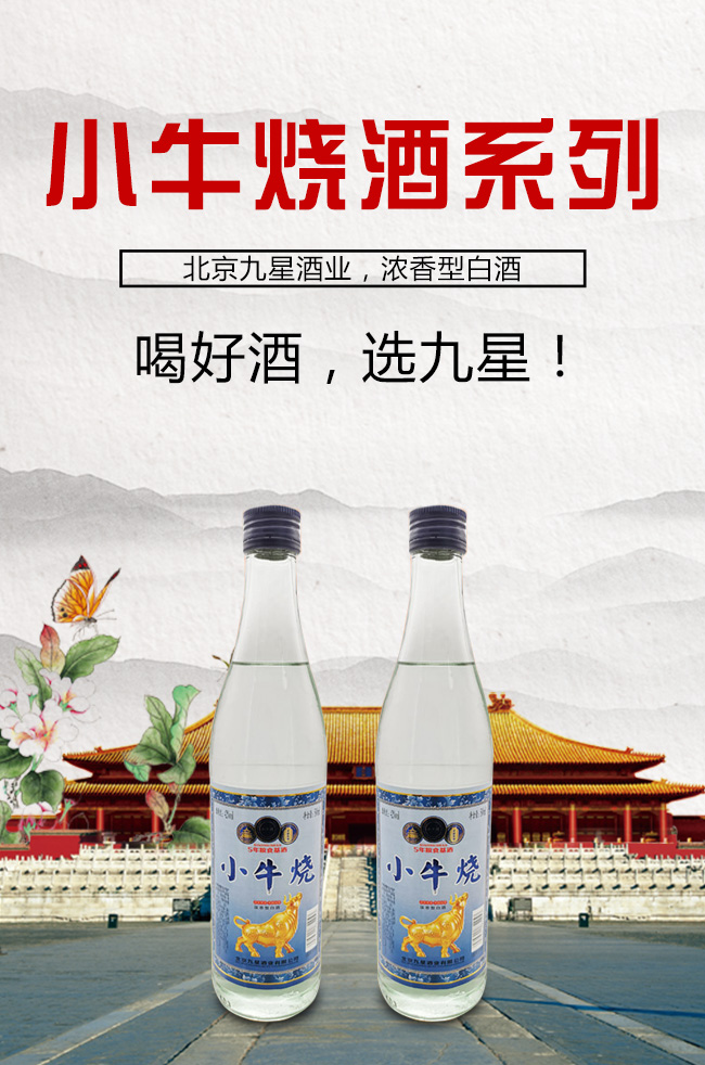 北京九星酒業(yè)有限公司是一家集產(chǎn)品研發(fā),生產(chǎn)銷售為一體的現(xiàn)代化白酒規(guī)模企業(yè)。目前開發(fā)的主要是皇城門系列白酒產(chǎn)品。是以優(yōu)質(zhì)高粱為主要原料,用大麥、小麥、豌豆制成大曲,輔多種微生物為糖化酵劑,再經(jīng)過長期發(fā)酵,緩慢蒸餾,取之精華,經(jīng)多年陳貯后,精心勾兌而成。以“清香幽雅,醇厚綿甜,尾昧爽凈”的獨特風(fēng)格,深受各界朋友的青睞。