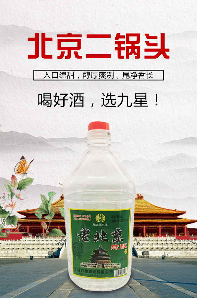 北京九星酒業(yè)有限公司是一家集產(chǎn)品研發(fā),生產(chǎn)銷售為一體的現(xiàn)代化白酒規(guī)模企業(yè)。目前開發(fā)的主要是皇城門系列白酒產(chǎn)品。是以優(yōu)質(zhì)高粱為主要原料,用大麥、小麥、豌豆制成大曲,輔多種微生物為糖化酵劑,再經(jīng)過長期發(fā)酵,緩慢蒸餾,取之精華,經(jīng)多年陳貯后,精心勾兌而成。以“清香幽雅,醇厚綿甜,尾昧爽凈”的獨(dú)特風(fēng)格,深受各界朋友的青睞。