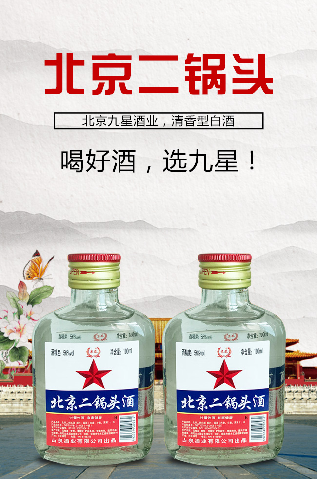 產(chǎn)品名:京恭北京二鍋頭酒白瓶56°100ml清香型白酒