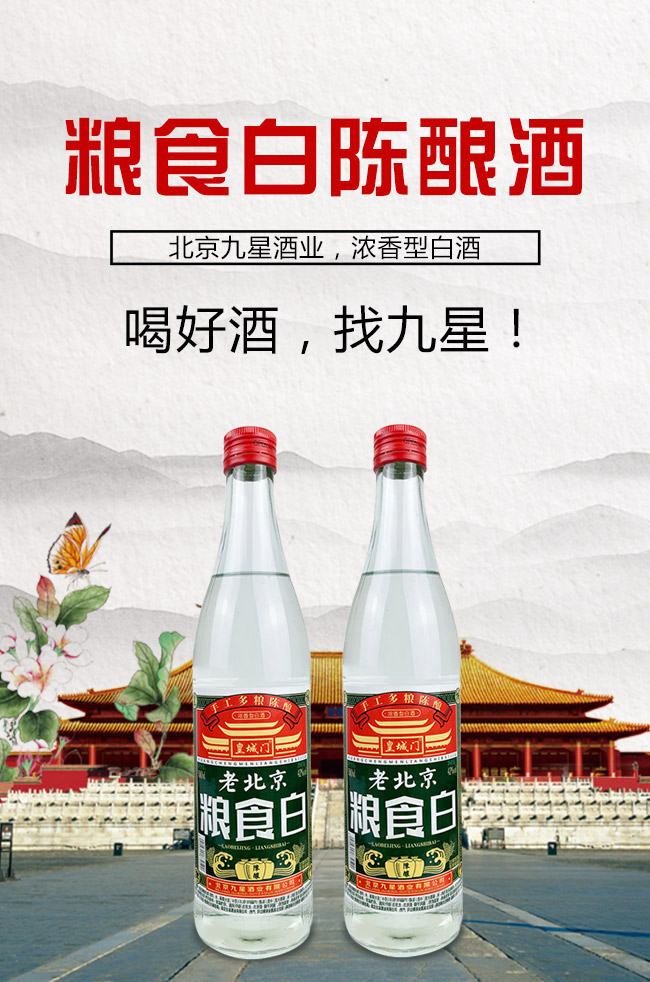 北京九星酒業(yè)有限公司是一家集產(chǎn)品研發(fā),生產(chǎn)銷售為一體的現(xiàn)代化白酒規(guī)模企業(yè)。目前開發(fā)的主要是皇城門系列白酒產(chǎn)品。是以優(yōu)質(zhì)高粱為主要原料,用大麥、小麥、豌豆制成大曲,輔多種微生物為糖化酵劑,再經(jīng)過長期發(fā)酵,緩慢蒸餾,取之精華,經(jīng)多年陳貯后,精心勾兌而成。以“清香幽雅,醇厚綿甜,尾昧爽凈”的獨特風(fēng)格,深受各界朋友的青睞。