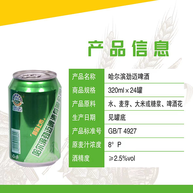 哈爾濱勁邁啤酒有限公司以展示人生奉獻(xiàn)社會(huì)為宗旨,奉行以市場為主導(dǎo),視質(zhì)量為生命的觀念,為廣大消費(fèi)者釀造啤酒。以人為本,厚德重信,科學(xué)發(fā)展,和諧共贏,與時(shí)俱進(jìn),開拓創(chuàng)新是我企業(yè)的經(jīng)營理念。