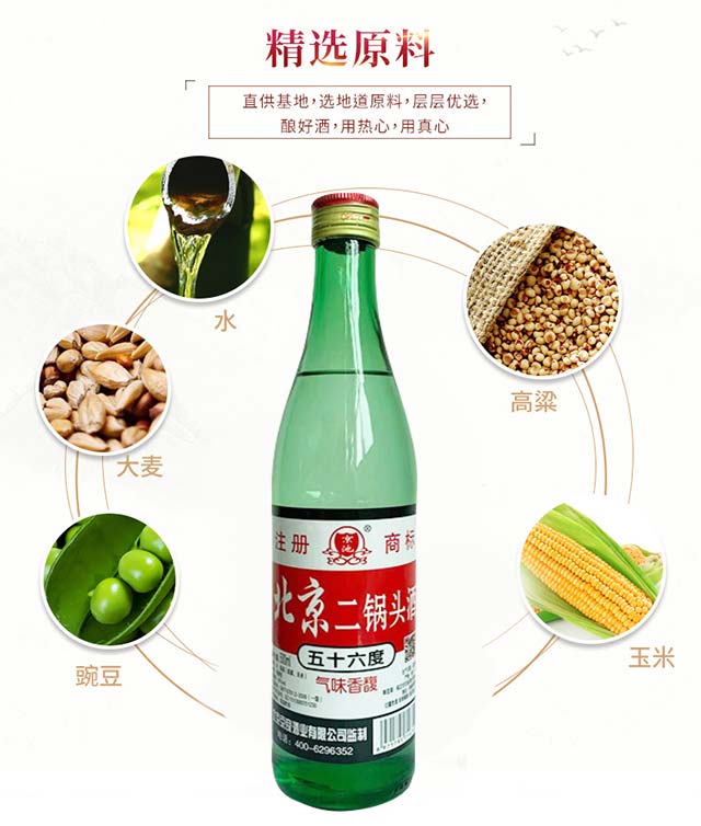 產(chǎn)品名:京良北京二鍋頭酒(綠瓶) 清香型白酒【56° 500ml】