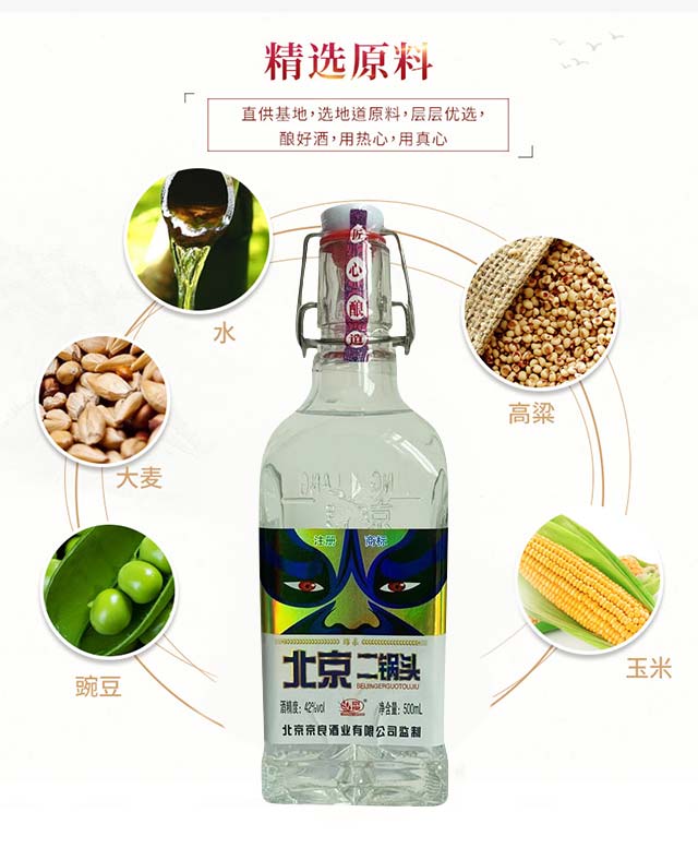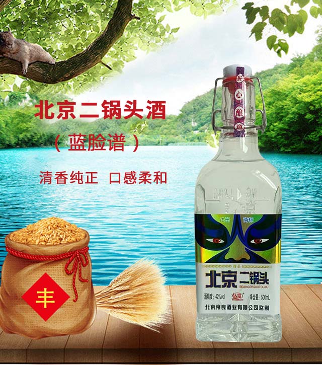 產(chǎn)品名:京良北京二鍋頭酒(藍(lán)臉譜) 清香型白酒【42° 500ml】