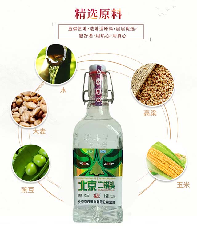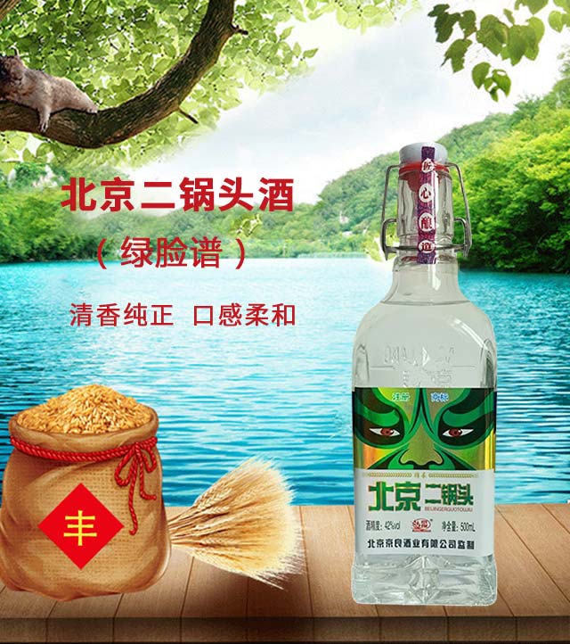 產(chǎn)品名:京良北京二鍋頭酒(綠臉譜) 清香型白酒【42° 500ml】