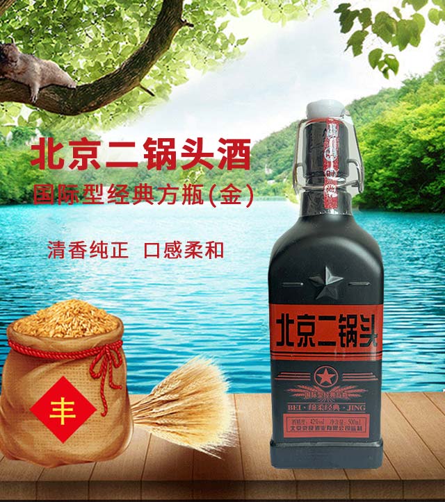 產(chǎn)品名:京良北京二鍋頭酒國際型經(jīng)典方瓶(黑) 清香型白酒【42° 500ml】