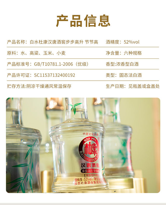 品名:白水杜康漢唐酒窖步步高升節(jié)節(jié)高酒 濃香型白酒【52° 3000ml】