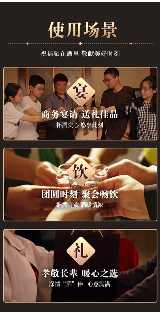 適飲場合:商務(wù)宴會、團圓小酌、婚慶宴席、節(jié)日送禮、收藏