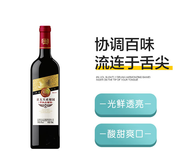 公司選擇名優(yōu)石榴,經(jīng)榨汁發(fā)酵,精心釀制而成。