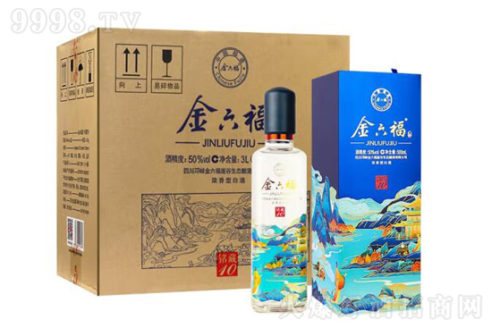 透明瓶身濃濃福氣透瓶而出!國潮風瓶標搭配金邊線條盡顯非凡品味.高端深藍包裝盒凹凸國潮紋理精選堅固材料運輸無憂,純糧釀造一五種糧食配方工藝,夫六福者:一日壽, 二日富,三日康寧,四日攸好德,五日佳和合,六日子念慈。陸子如是說,其善之善者也。