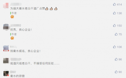 河北地區(qū)人民群眾紛紛表示,通過此次行動看到了衡水老白干的勇毅擔當,能夠在困難時刻積極承擔社會責任的企業(yè),必將走的更加長遠,擁有更好的發(fā)展!作為家鄉(xiāng)的白酒,果然粉衡水老白干是不會錯的!