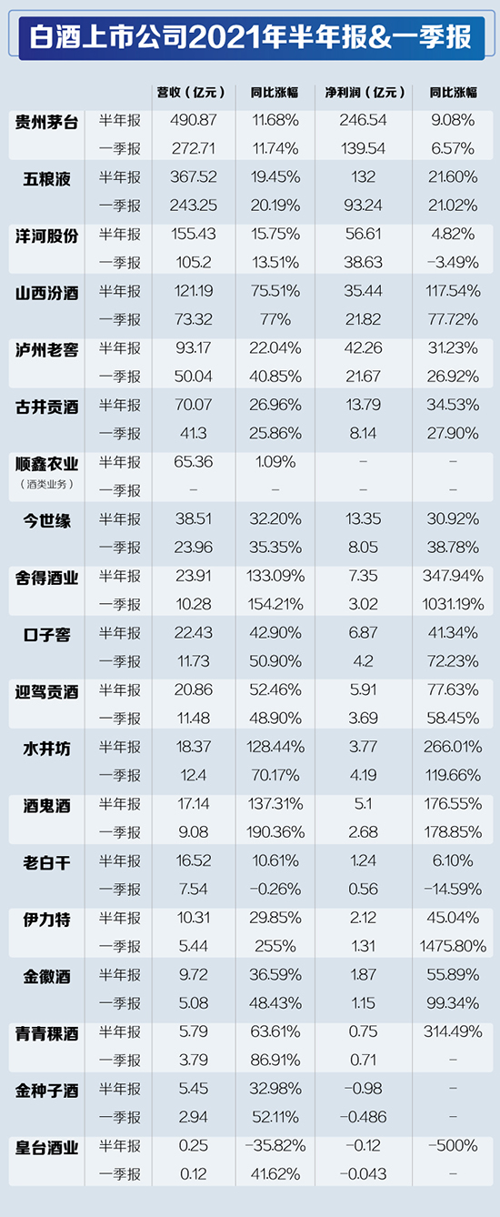 隨著8月29日五糧液半年報(bào)數(shù)據(jù)的“出爐”,19家白酒上市公司的2021年半年報(bào)已全部亮相。