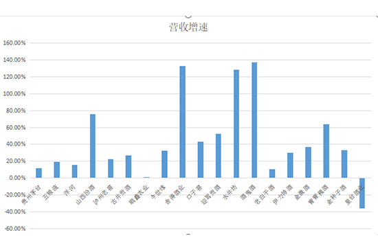 在營(yíng)收增速上,競(jìng)爭(zhēng)則更加激烈。除皇臺(tái)酒業(yè)外,18家企業(yè)實(shí)現(xiàn)營(yíng)收正增長(zhǎng),其中舍得酒業(yè)、水井坊、酒鬼酒三家企業(yè)增速翻倍,山西汾酒、迎駕貢酒、青青稞酒的營(yíng)收增幅也均超過50%。