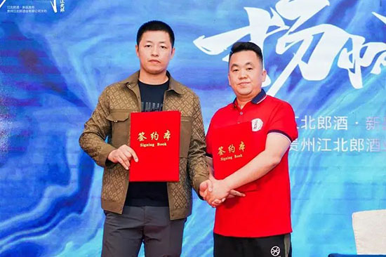 江北郎全國營銷總監(jiān)楊天明與各地經(jīng)銷商簽約